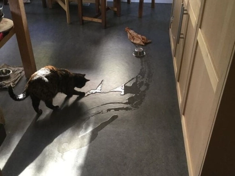 "This cat loves to splash in a water bowl" reveals feline curiosity and playfulness. Many cats find water fascinating—tapping, pawing, or swirling their paws provides endless entertainment. It's a charming reminder that even the most dignified cats have wonderfully mischievous sides.Advertisement