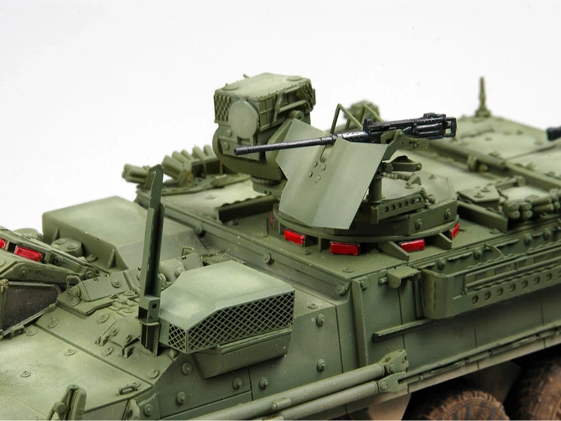 The M1127 Stryker embodies U.S. recon innovation. This eight-wheeler delivers advanced electronics, agility, and survivability. Integrated C4ISR systems provide unprecedented situational awareness, while a remote weapon station enables under-armor engagement. A 450-horsepower diesel powers all eight wheels via a central tire inflation system for quick terrain adaptation. Its modular layout supports rapid mission reconfiguration, and the fire control suite includes thermal imaging and laser rangefinding.