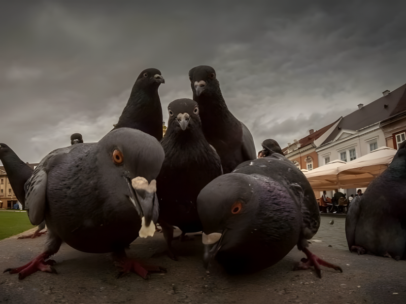 These pigeons seemed ready for a showdown, feathers fluffed and eyes locked. Then a single breadcrumb dropped, and tensions vanished in an instant. It is a comical reminder of how quickly priorities can change.