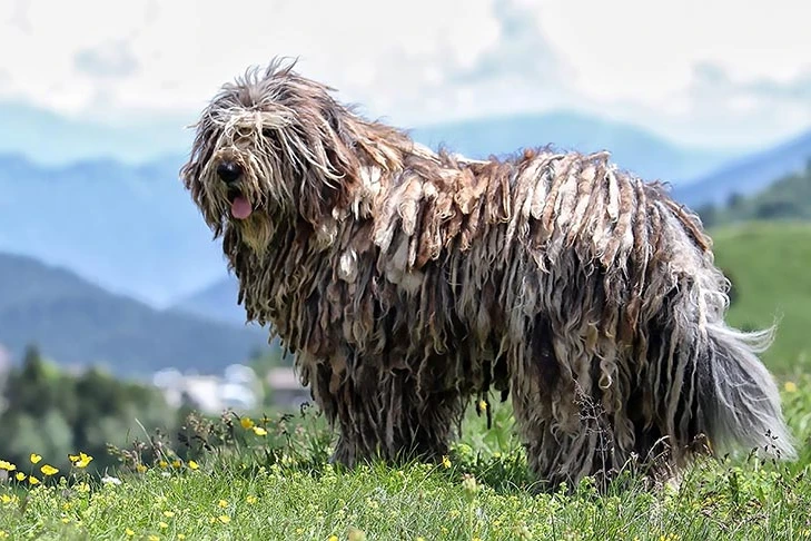 The Bergamasco Sheepdog is noted for its layered felt like coat formed from three hair types. Tracing back to ancient trade routes it nearly disappeared after World War II. The natural mats insulate and protect in Alpine conditions and need minimal trimming once formed. Steady intelligent and patient it stands about 22 to 24 inches and weighs 57 to 84 pounds. Strong problem solving instincts make it a rewarding partner for owners who value both work ability and rare looks.