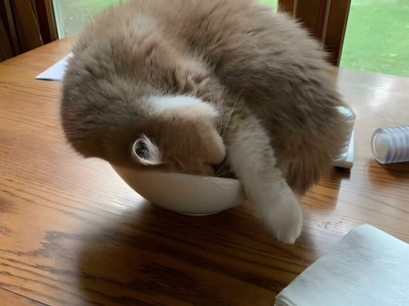 Despite the luxurious bed you chose, your cat picks a simple bowl for naps. The feline mind defies explanation—maybe the snug fit soothes, or maybe it is just another way to keep you guessing.