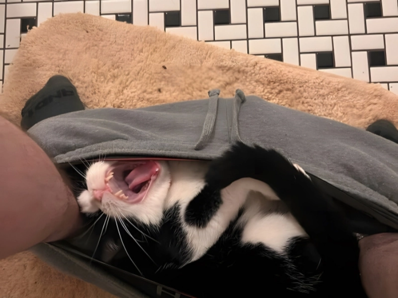 Every cat has unique quirks, but this one is a standout. Instead of resting at your feet, it nestles into your pants, turning them into a hammock. Who knows what goes through a cat’s mind; comfort and creativity are always near the top.