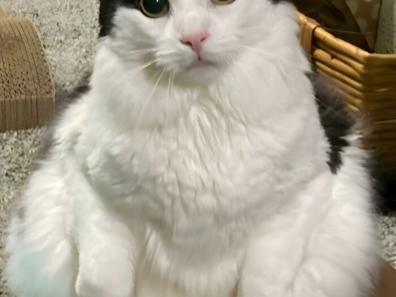This adorable cat knows how to melt hearts, tucking tiny paws close to its fluffy body for maximum charm. Whether posing for the camera or seeking attention, the look is irresistible.