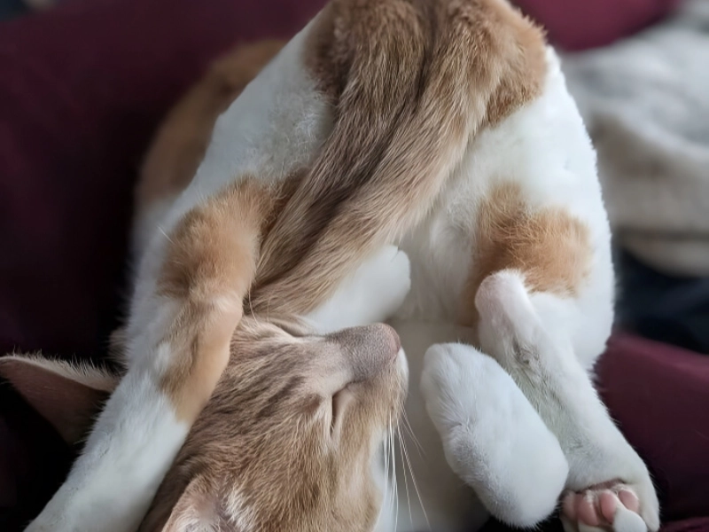 Yoga trends come and go, but cats have been flexibility masters for ages. This feline takes relaxation further, nodding off in a pose that would challenge even seasoned yogis.