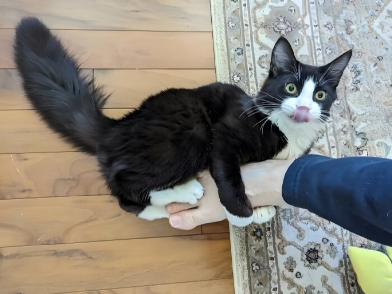 Clingy cat syndrome, activated. This adorable furball has taken pursuit of your attention to the next level, refusing to let go of your arm no matter what. It is like having a living shadow—softer and far more insistent. Whether you are working, relaxing, or moving room to room, this determined kitty must be by your side.