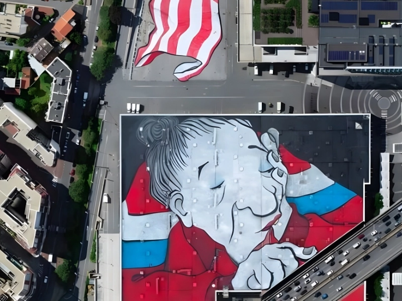 壁画は公共の場所に鮮やかな色彩をもたらしてくれるので、私たちの上空を飛ぶ人々も壁画を楽しめるはずです。エラ & ピトルによるこの壁画は、2.5 ヘクタールを超える広さで、ヨーロッパ最大の壁画だと考えられています。
