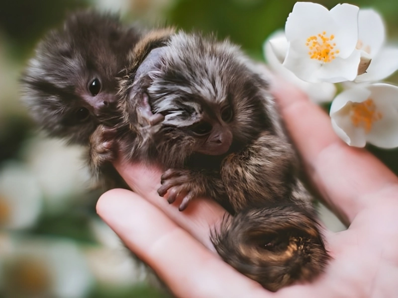 この範囲には、他の種類のサルが巨大なサイズに成長するにもかかわらず、より小型の種類のサルがおり、それらはマーモセット サルとしてよく知られています。この写真から、生まれたばかりのマーモセットがいかに小さいかがわかります。
