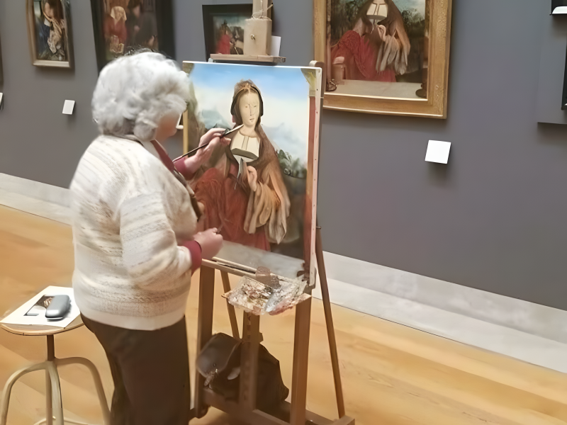 この美術館では、展示作品の質を保つために写真撮影を禁止しています。しかし、この女性は、自分が見て愛した作品を思い出したいと心から思って、絵画の 1 つを模写することにしました。彼女は非常に才能のある芸術家であることは明らかです。そして、幸運な鑑賞者が鑑賞できるもう 1 つの芸術作品を生み出したようです。美術館は、本当に彼女の雇用を検討すべきです。