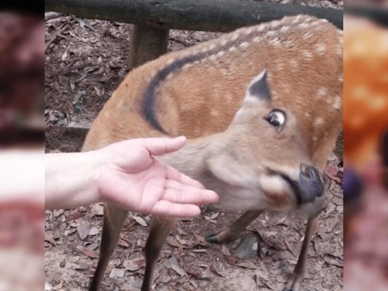 "What is this mysterious thing reaching for me?" wonders this curious hoofed animal. Its puzzled expression and cautious curiosity create an adorable yet hilarious moment. This photo perfectly shows how animals' reactions to unfamiliar things become endlessly endearing, as if discovering the world anew.
