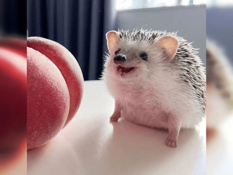 This hedgehog's excitement over a simple peach proves absolutely heartwarming. With tiny paws clutching the fruit and an expression of pure bliss, this moment reminds us that happiness often resides in simplest things. This delightful snapshot captures life's little joys perfectly.