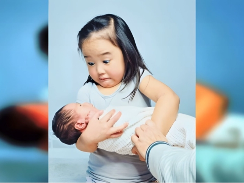 A little girl holding her newborn brother is pure sweetness. This tender moment captures the essence of sibling love and innocence. The older sister’s pride and joy shine as she gently cradles her baby brother, creating a heartwarming scene parents will treasure. The bond here marks the start of a lifelong friendship, and the photo preserves a memory that will spark smiles for years.