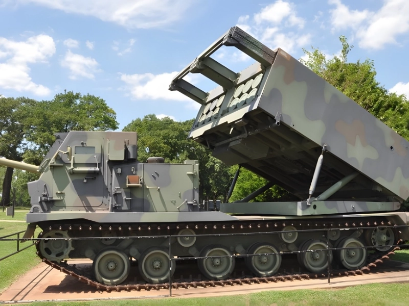 The M270 MLRS offers a 300-mile operational range, enhancing battlefield mobility. Its ideal firing range is within twenty miles for maximum effect. Built for rapid response, it can launch 12 rockets in 40 seconds or two missiles in ten, delivering quick, powerful support to ground forces.